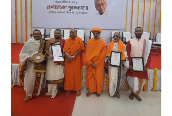 विश्व हिंद परिषदेचे संस्थापक सदस्य तथा श्री रामजन्म भूमि आंदोलनाचे अग्रणी अशोक सिंघल यांच्या पुण्यतिथी निमित्ताने भारतात्मा अशोक सिंघल वेद पुरस्कार दरवर्षी प्रदान केले जातात. याच शृंखलेत २०२५ चे पुरस्कार सोमवार १७ नोव्हेंबर २०२५ रोजी बीएमसीसी रोडवरील दादासाहेब दरोडे सभागृहात वितरित करण्यात आले. उत्कृष्ट वेद विद्यार्थी श्रेणीतील पुरस्कार हैदराबाद येथील श्री नोरी केदारेश्वर शर्मा, चेन्नईचे श्री अनंत कृष्ण भट्ट यांना आदर्श वैदिक शिक्षक पुरस्कार आणि सर्वोत्कृष्ट वैदिक संस्था पुरस्कार आंध्र प्रदेशातील राजमहेंद्रवरम येथील श्री दत्तात्रेय वेद विद्यालयाला यांना तीन लाख, पाच लाख आणि सात लाख रुपये, प्रमाणपत्र आणि स्मृतिचिन्ह देऊन स्वामी गोविंददेव गिरी महाराज आणि आचार्य श्री प्रद्युम्न महाराज यांच्या हस्ते सन्मानित करण्यात आले. त्यावेळी व्यासपीठावर सिंघल फाऊंडेशन मार्गदर्शक रवींद्र मुळे, सिंघल फाऊंडेशनचे मुख्य विश्वस्त संजय सिंघल आणि सलिल सिंघल उपस्थित होते.
