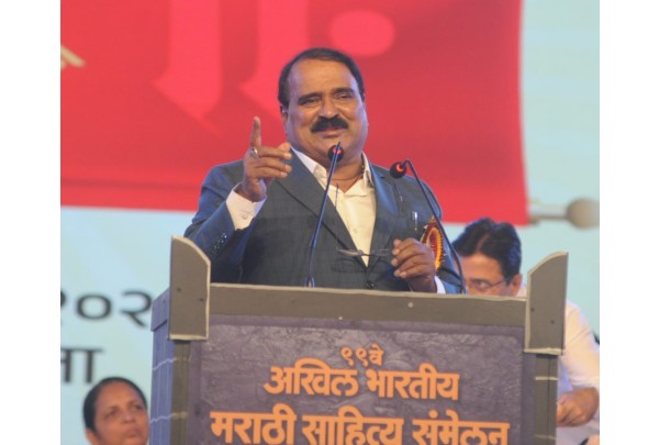 ९९ व्या साहित्य संमेलनाचा अध्यक्ष म्हणून या नात्याने मी भीती नव्हे तर वस्तुस्थिती सांगतो आहे. संयुक्त महाराष्ट्रात आम्ही मुंबई मिळवली, तेव्हा मराठी माणसांची संख्या ५०-५२ टक्के होती. २००१ च्या जनगणनेनुसार ती आता ३० टक्क्यांवर आली. नंतर २०११ च्या आकड्या नुसार साधारण ती संख्या ३५ टक्के झाली. आता तर ती त्याहून खूप खाली निचांकावर जाऊन पोचली आहे. गिरगाव, दादर, पार्ला सारे रिकामे होत आहे. आम्हां सर्वांच्या डोक्यावरुन पुनर्वसन आणि स्थलांतराचा वरवंटा फिरतो आहे. पण मलबार हिल इंद्रपुरी नावाच्या जागेच्या पुर्नवसनाचा प्रस्ताव कधी परमेश्वराला सुद्धा स्वप्नात बघायला मिळणार नाही. जेव्हा या भूमीतले हत्ती आणि नवसाचे गणपतीसुद्धा आमचे राहिले नाहीत. त्यांना पुन्हा मिळवण्यासाठी आम्ही आता कोणत्या देवाकडे नवस बोलायचा.”